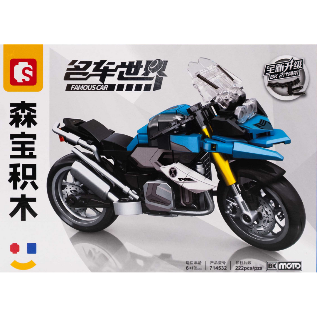 Set de bloques para armar una moto deportiva con detalles realistas, ideal para fans de las motos y la construcción.